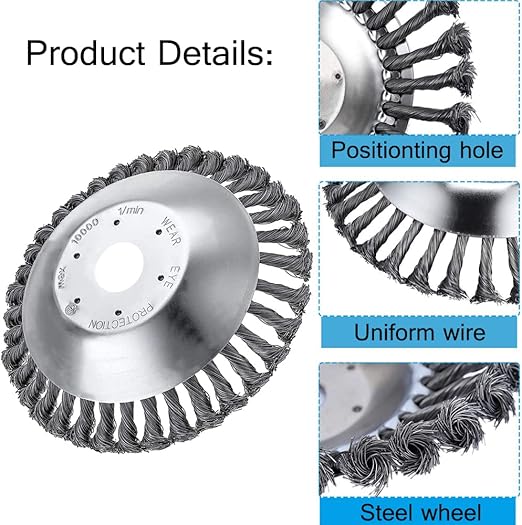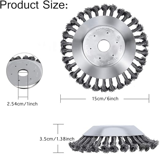 Evrensel uyumlu – 6 inç düğümlü çelik tel çelik tekerlek fırçası, 25,4 mm açıklığa sahip çoğu çim biçme makinesi ile uyumludur.