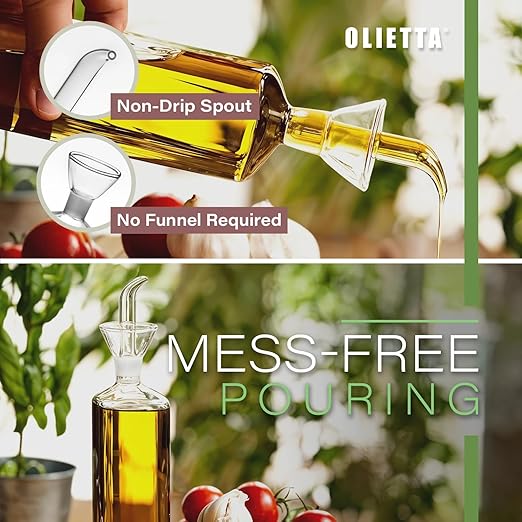 ÇOK YÖNLÜ BOYUTLAR: Olietta salata sosundan yemek hazırlamaya veya biber yağı demlemeye kadar tüm yağ dökme ihtiyaçlarınızı karşılamak için üç uygun boyut sunar. Tazeliği en üst düzeye çıkarın ve israfı ortadan kaldırarak hassasiyet ve kontrolle dökün.