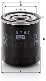 MANN-FILTER yağ filtresi W 716/2, boyutlar (mm): H = 90, A = 76, B = 63, C= 72, J = 1.2 bar/ orijinal ekipman kalitesinde, birinci sınıf filtre