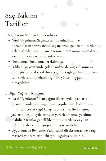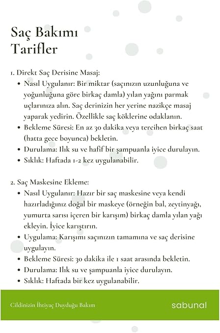 Yılan Yağı, saç derinizin beslenmesini ve güçlenmesini sağlar.