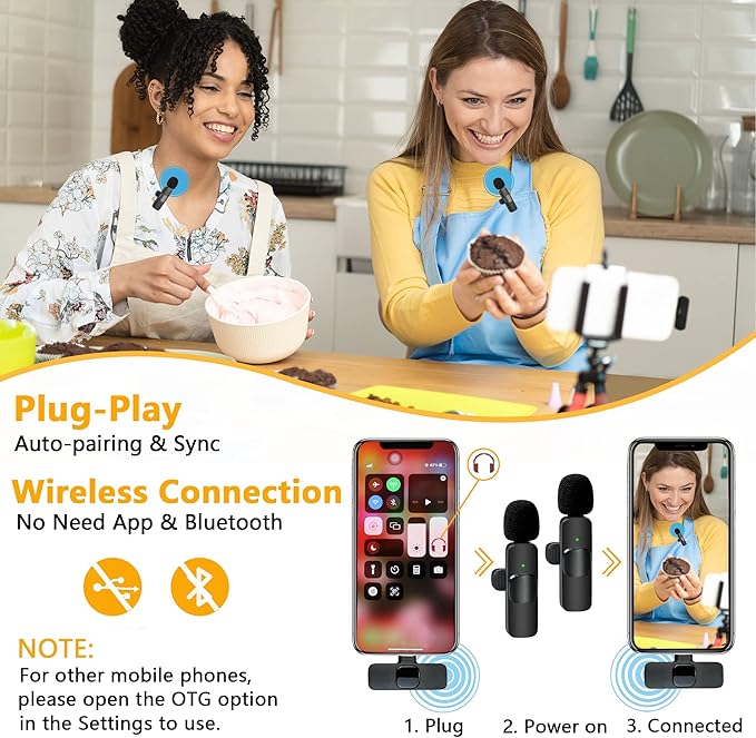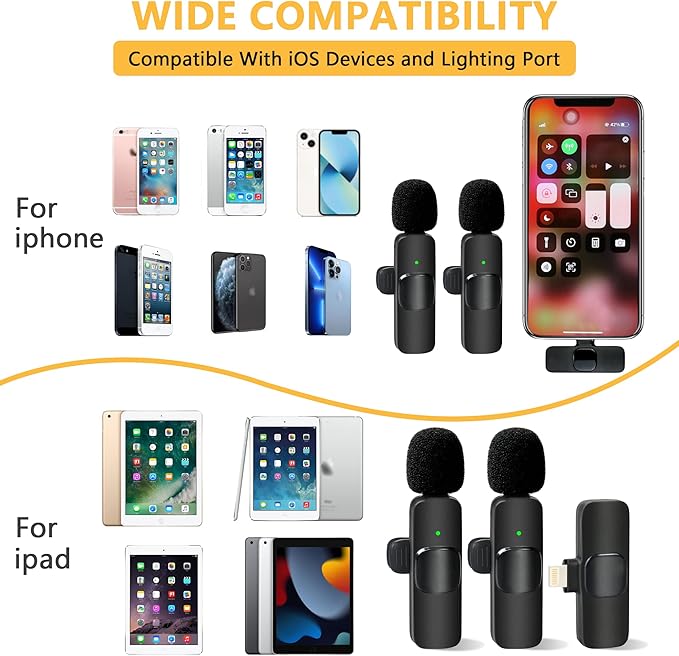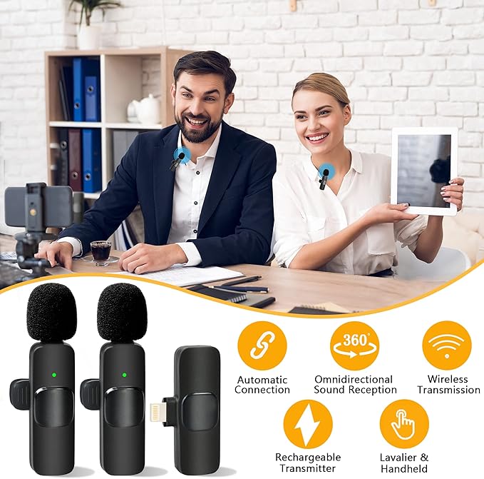 Yaka Yaka Mikrofon iPhone iPad Profesyonel Klip Mikrofon – Kablosuz Yönlü Kondenser Kayıt 2 Mikrofon Röportaj Video Podcast Vlog YouTube