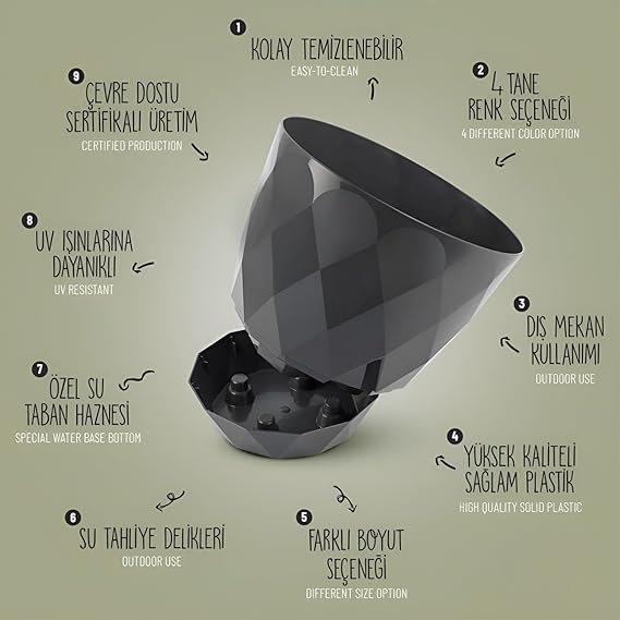 Kategoriler: Bahçe, Bahçe Aletleri ve Sulama Ekipmanları, Çiçek Saksıları, Saksılar ve Aksesuarları