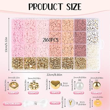 【Boncuklu bileklik seti】: Yakl. Bileklikler için 2680 boncuk, dahil yakl. 2160 düz boncuk, 70 rastgele harf boncuğu, 50 kalp boncuk, 100 yuvarlak altın boncuk, 100 beyaz inci, 100 altın çiçek boncuğu, 100 altın düz boncuk ve 1 rulo elastik ip, yeterli miktarda ve çeşitli stillerde