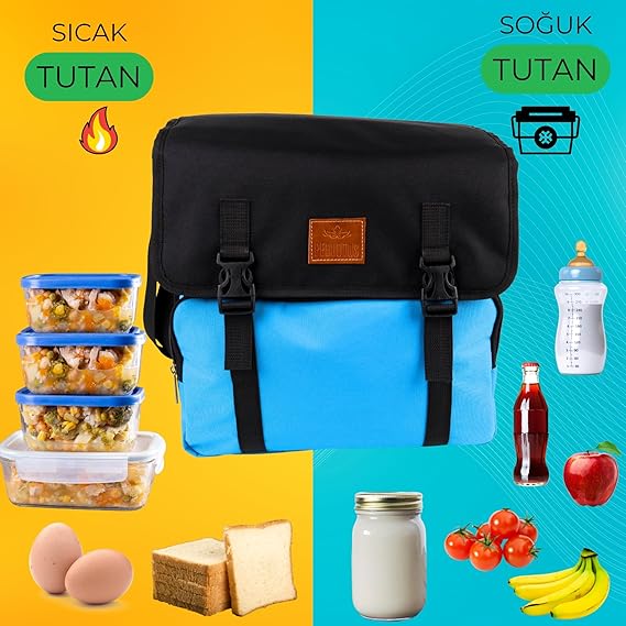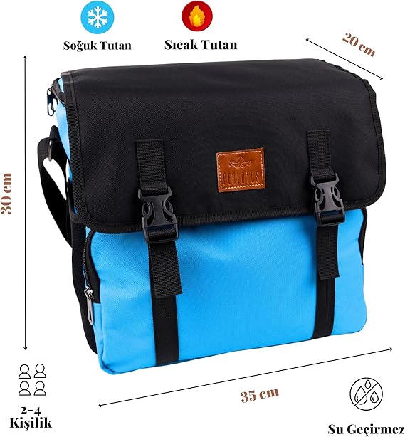 YALITIM VE EBAT Gelişmiş yalıtım 8 mm Kalın köpüklü pet teknolojisi sayesinde büyük boy 35 cm genişlik 30 cm yükseklik 20 cm derinliği olan bu termos çanta yiyecekleri ve içecekleri uzun saatler 9-14 saat boyunca sıcak veya soğuk muhafaza eder tazeliğini korur