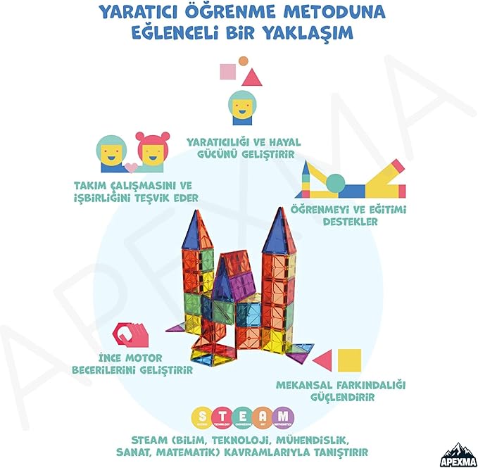 Eğlenirken Öğrenme Deneyimi: Bu manyetik karo seti, STEM (Bilim, Teknoloji, Mühendislik, Matematik) odaklı öğrenmeyi destekler. Çocuklar kendi yapılarının mimarı olurken aynı zamanda temel mühendislik ve denge kavramlarını keşfederler. Renkli tasarımı ve eğitici içeriğiyle doğum günü, özel gün veya tatil hediyesi olarak harika bir tercihtir. Bu set ile çocuklar hayal güçlerini gerçeğe dönüştürür, hem eğlenir hem de öğrenir!