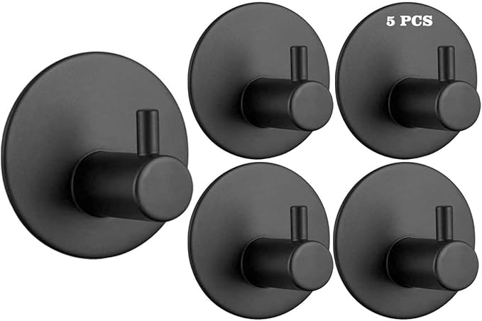 Yapışkanlı Askılık – 5’li Paket, Ağır Hizmet, Duvar Kancaları, Su Geçirmez Paslanmaz Çelik Askılıklar Ceket, Havlu, Bornoz Askılık Duvara Montaj, Banyo Mutfak Garaj Ev Otel Ofis Dolabı ve Yatak Odası Askıları 3M Bantlı, Mat Siyah MAT SİYAH 06