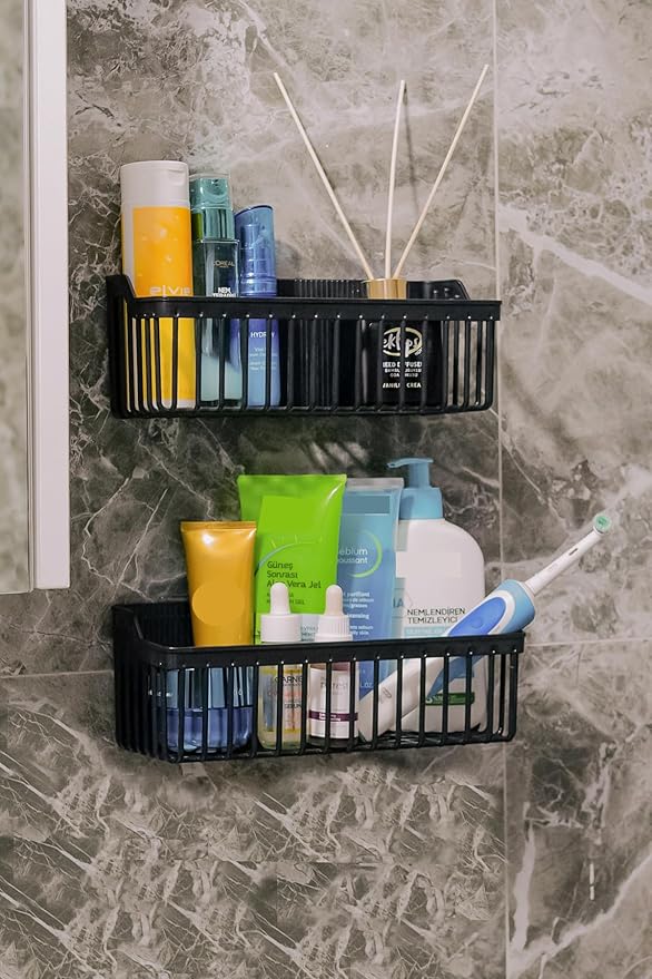 Yapışkanlı Banyo Rafı, 2’li Banyo Düzenleyici, Duş Rafı Organizer Şampuanlık, Duşakabin Rafı, Banyo Organizeri, Banyo Askısı Plastik