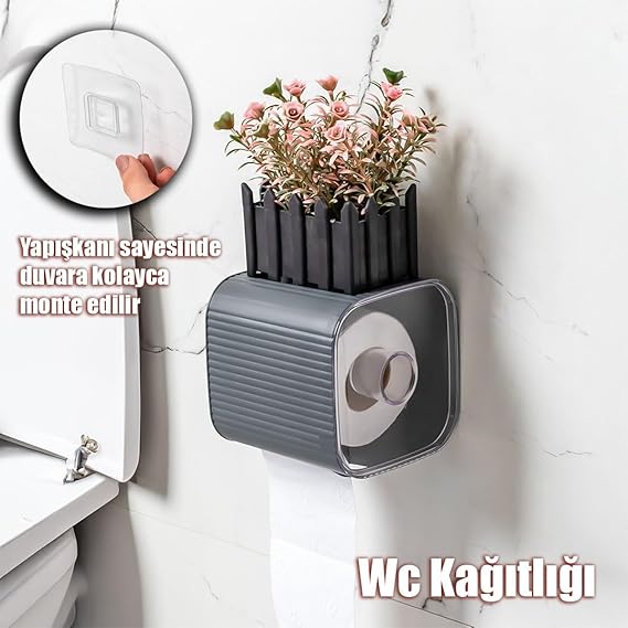 Yapışkanlı Banyo Tuvalet Kağıtlığı Wc Peçetelik Kağıtlık Tutucu Tuvalet Kağıt Organizeri (Antrasit)