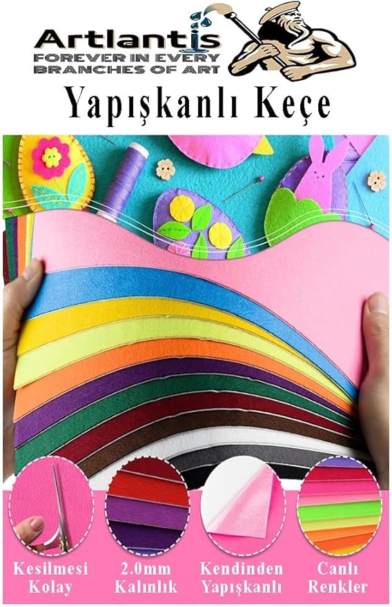 Yapışkanlı Keçe 35×50 cm 3 Adet 2.0 mm Kendinden Yapışkanlı Renkli Hobi Keçesi Elişi Keçe Kumaşı Anasınıfı