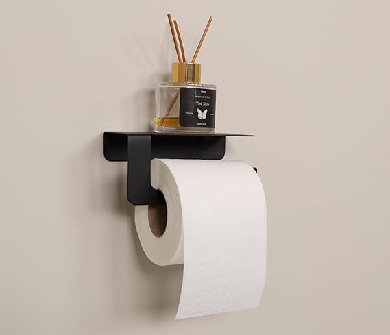 Yapışkanlı ve Vidalı Mat Siyah Telefon Raflı Tuvalet Kağıtlığı Wc Kağıtlık Tuvalet Kağıdı Askısı