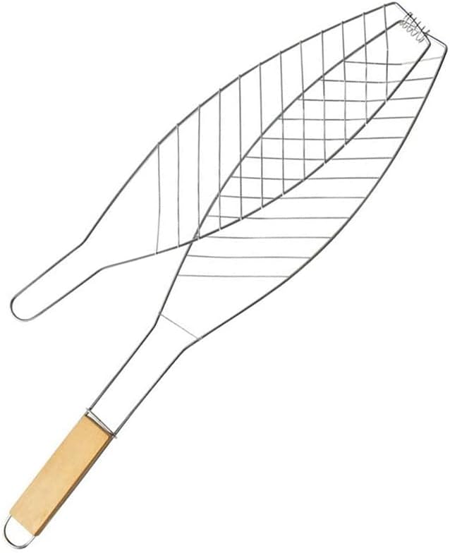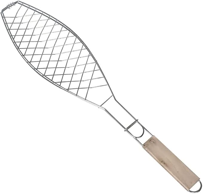 Yapışmaz Balık Izgara Teli, Izgara için Balık Teli, Barbekü Aksesuarları, Dış Mekan, Pişirme Ekipmanları, Ahşap Saplı Izgara Teli,