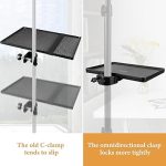Mikrofon standı tepsisi, maksimum 5,5 lb / 2,5 kg yük ile 8 x 6,3 inç (20,5 x 16 cm) ölçülerindedir ve mikrofon, ses kartı, telefon, tablet ve diğer birçok cihazı yerleştirebilir.