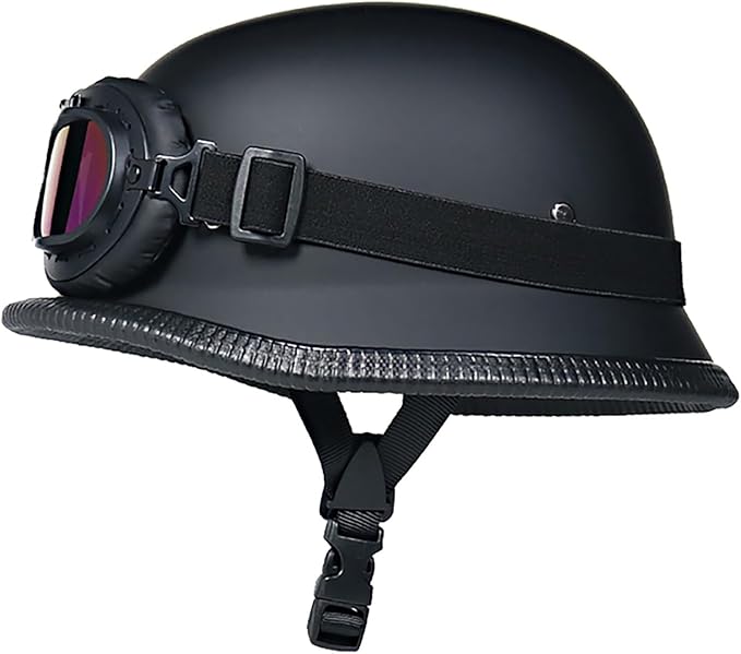 Yarım Kabuk Kask Vintage Alman Tarzı Yarım Kask Açık Yüz Kask Gözlüklü DOT ECE Onaylı Cruiser Chopper Scooter Moped Pilot Kask(Matt black,M=(57~58cm))