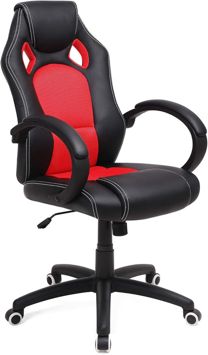 Yarış Sandalyesi, Ofis Sandalyesi, Oyun Sandalyesi, Yönetici Koltuğu, Döner Sandalye, Poliüretan, Siyah-Kırmızı, Obg56Br