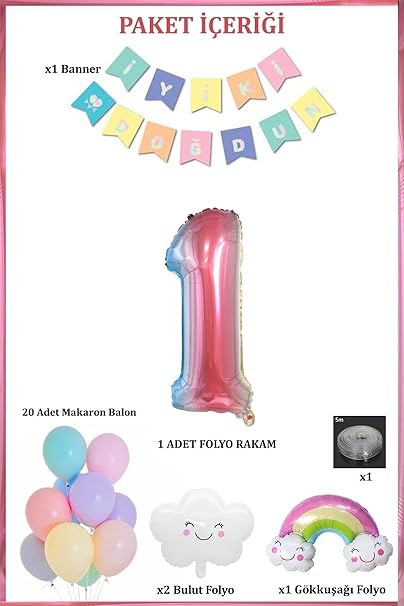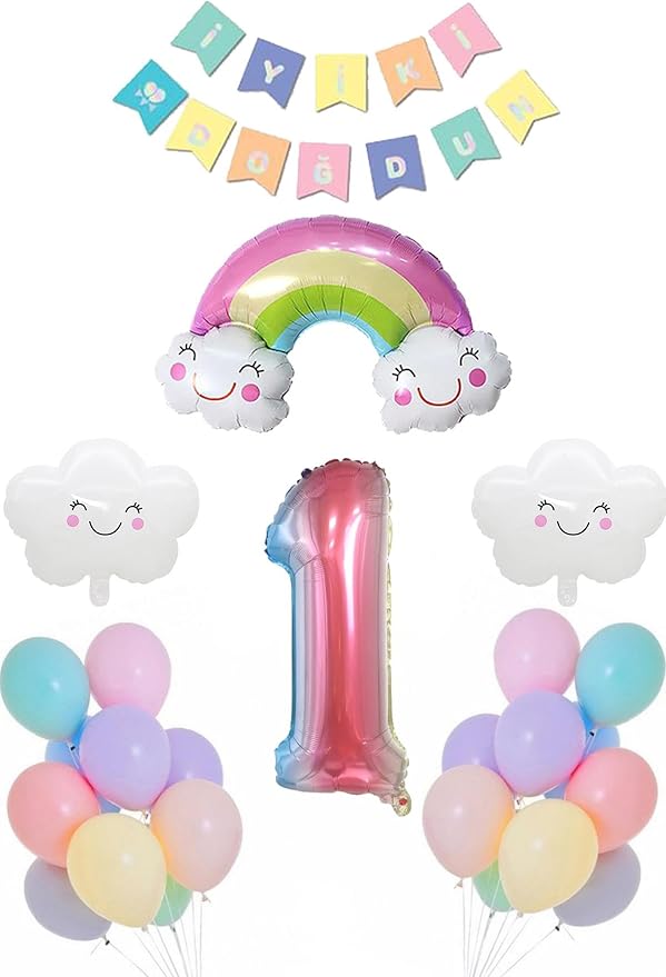 Yaş Gökkuşağı Bulut Konsepti Doğum Günü Parti Kutlama SetiUygunluk: 30 adet stokta