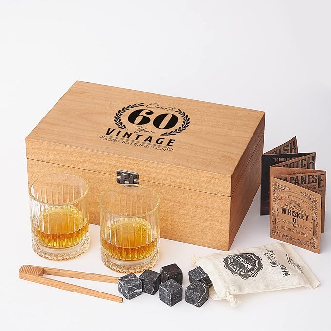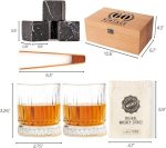 Yaş Tasarımlı Ahşap Kutulu 2’li Glasgow Viski Kadeh Seti + 6 Soğutucu Taş