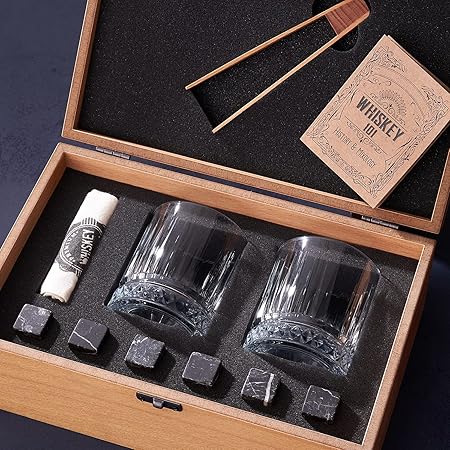 Viski setinde içerisinde 1 adet özel vintage viski bardağı, 6’lı doğal viski taşı gönderilmektedir