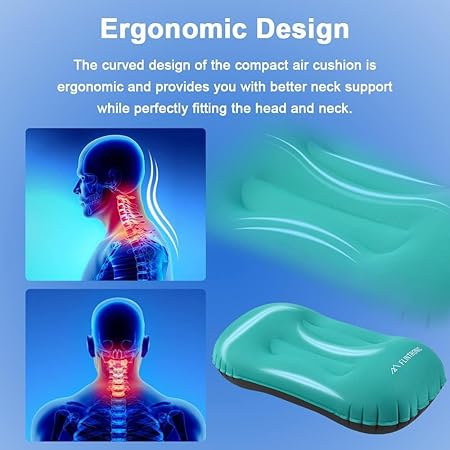 Geliştirilmiş ergonomik tasarım: Bu kamp yastığı ergonomik bir tasarıma sahiptir, kavisli tasarım, baş ve boyun kıvrımınıza mükemmel şekilde uyar, böylece daha iyi boyun desteği sağlar ve huzurlu bir uykunun tadını çıkarmanızı sağlar. Rahat hava yastığı, yan, sırt veya mide uyuyanlar için mükemmeldir, böylece herhangi bir uyku pozisyonunda en mükemmel deneyimi yaşamanızı sağlar!