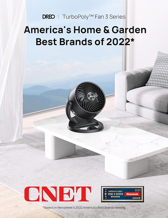 Tüm odanız için güçlü hava sirkülasyonu: Dreo’nun WingBoost sistemi, havayı 70 metreye kadar itmek için derin eğimli bıçakları ve aerodinamik tasarımı bir araya getirerek masa fanınızın tüm odanızda güçlü soğuk havayı dolaştırmasına ve geniş alanları geleneksel fanlardan daha hızlı soğutmasına yardımcı olur.