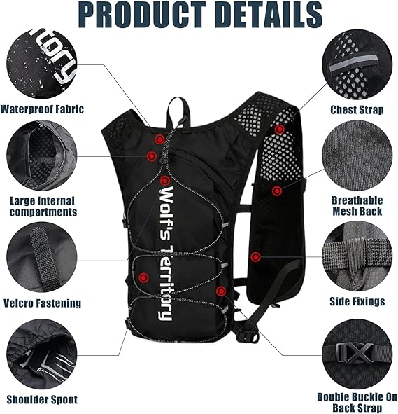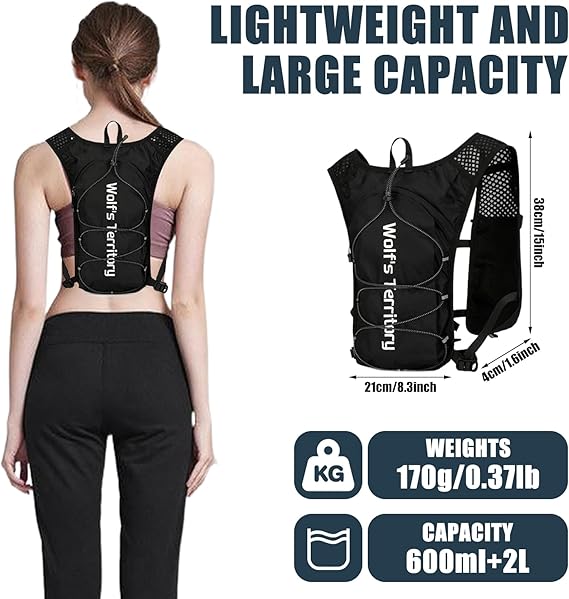 yeleği, kadın koşu sırt çantası, erkek, bisiklet sırt çantası, su geçirmez, ultra hafif ve nefes alır, reflektörlü koşu yeleği, 3 cepli ve 2 l + 600 ml alır, koşu, jogging, parkur koşusu için