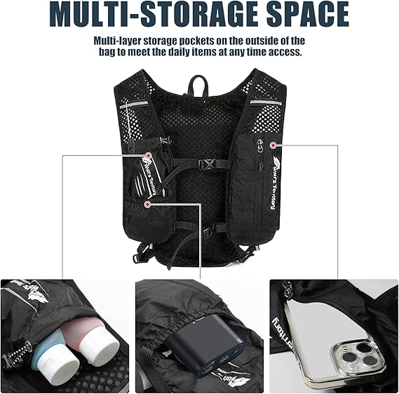 【Çok fonksiyonlu depolama】Erkek koşu yeleğimiz önemli eşyalarınızı taşımak için birçok bölmeli saklama bölmesine sahiptir: Cep telefonları, su şişeleri, anahtarlar, havlular ve küçük eşyalar. Tüm taşıma ihtiyaçlarınızı karşılayabilir