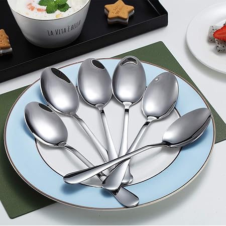 Yemek Kaşığı, 6 Parça 7.5″ Paslanmaz Çelik Yemek Kaşığı, Çorba Kaşığı, Tatlı Kaşığı Gümüş Bulaşık Makinesi 6’lı Set