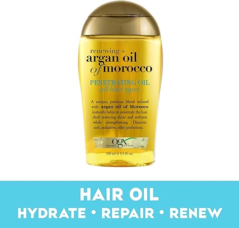 YENILENEN SAÇ YAĞI: 33-ons OGX yenileme kabı Fas Argan Yağı Penetran Saç Yağı Tedavisi saçlara yenilenmiş bir görünüm ve ipeksi mükemmellik ve parlak bir parlaklık hissi verir
