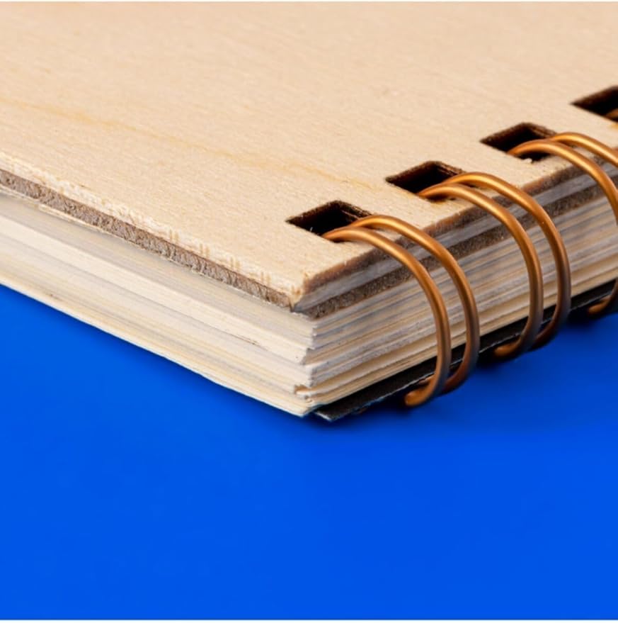 Ahşap kapaklı defterde özel bronz renkli metal malzemeli ve dayanıklı spiral bulunmaktadır.