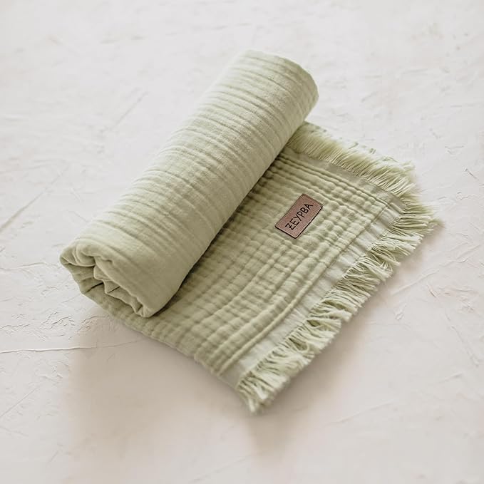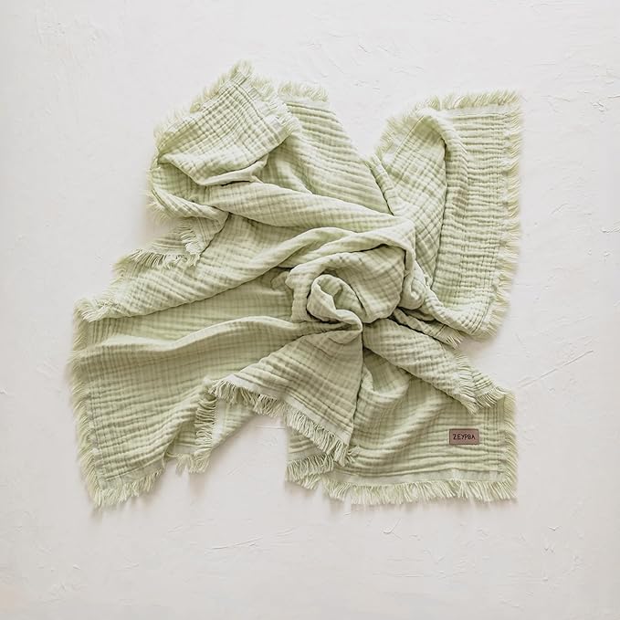 Yeşil 4 Katlı Müslin Bebek Ve Çocuk Battaniyesi%100Pamuk Baby Muslin Blanket