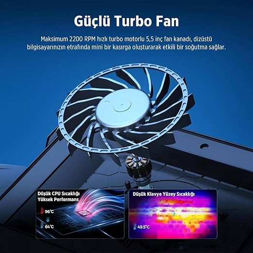 Juo Yeti 300 ile 2200RPM fan hızı aralığına sahip olup, 14″ – 19″ inch arası tüm macbook, laptop ve notebook bilgisayarlar ile uyumludur. Juo Yeti’yi tamamen çevreleyen 10 farklı RGB ışık modu masanıza ve odanıza farklılık katacaktır.