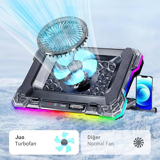 Juo Yeti 2200RPM 10RGB ışık modlu gaming oyuncu laptop notebook dizüstü bilgisayarlar için özel olarak tasarlanmış bir soğutucu stand modelidir. Dizüstü bilgisayarınızın performansını artırmak ve ısınma sorunlarını ortadan kaldırmak için en iyi çözüm! Juo Yeti 2200RPM Laptop Notebook Soğutucu, güçlü fanı ve ayarlanabilir yükseklik seçenekleriyle en zorlu iş yüklerinde bile bilgisayarınızı serin tutar.