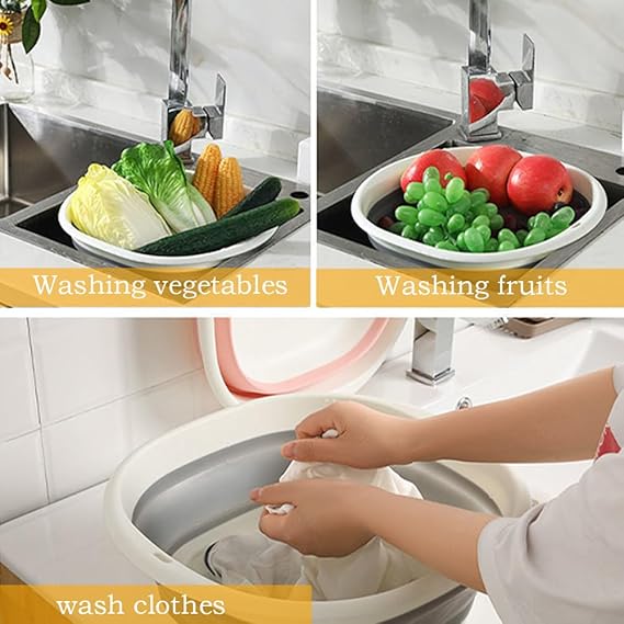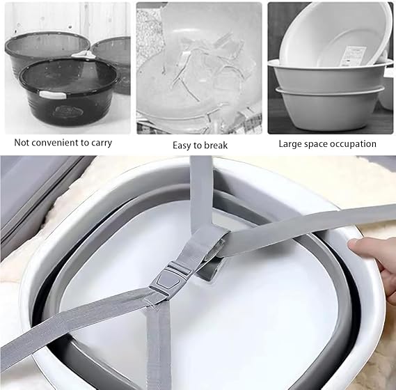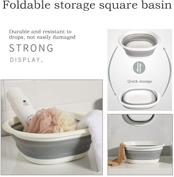 Birçok yerde kullanım — Taşınabilir lavabo, yetişkinler ve çocuklar için yüz yıkamak için uygundur. Banyoda kıyafetleri, şampuanı ve dış mekan aktivitelerini, seyahatleri, kampları, mangal pikniklerini yumuşatmak için de kullanabilirsiniz. Ayrıca sebze ve meyveler için lavabo veya yürüyüş, tekne gezintisi ve daha fazlası gibi şeyler için saklama kabı olarak tüm ev ihtiyaçlarınız için kullanılabilir.