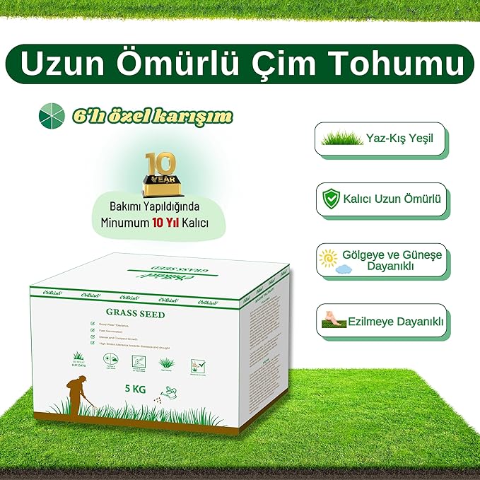 Yıllık Çim Tohumu 5 Kg Uzun Ömürlü 6'lı Karışım Gölge ve Aşırı Güneşli Alan Uygun Yetiştirilmesi Kolay 4 Mevsim YeşilYıllık Çim Tohumu 5 Kg Uzun Ömürlü 6’lı Karışım Gölge ve Aşırı Güneşli Alan Uygun Yetiştirilmesi Kolay 4 Mevsim Yeşil