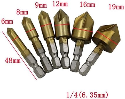 Yiv Açma Aleti 6 Adet HSS Matkap Ucu Seti 90° 6, 8, 9, 12, 16, 19 mm Havşa Uçları