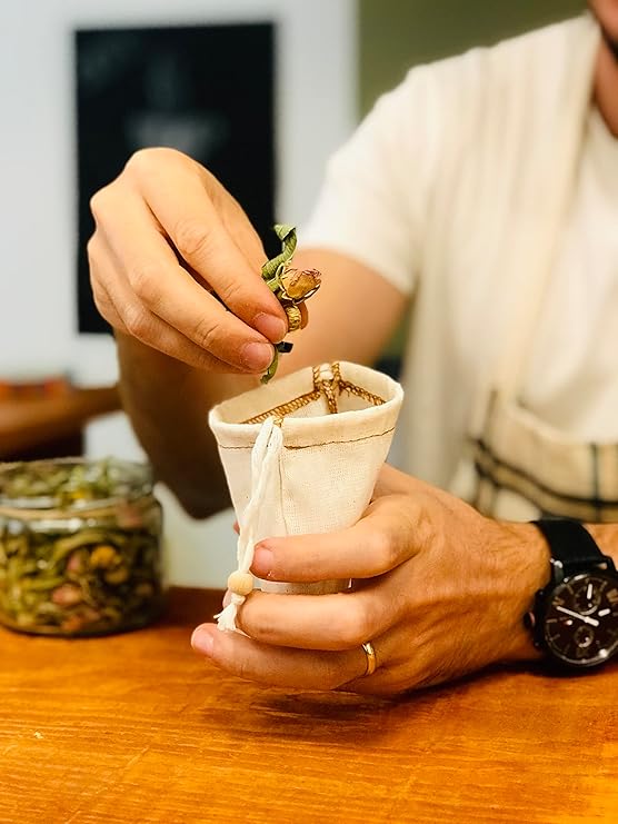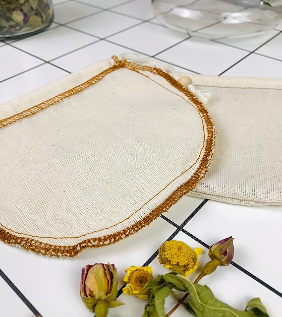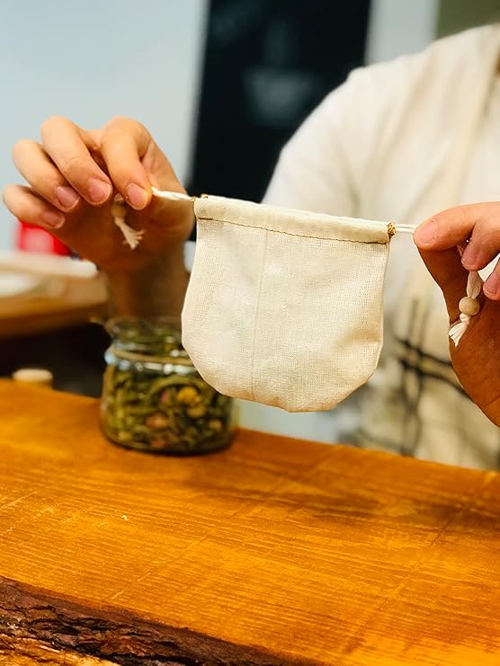 yoga and food 2 adet Demlik Yıkanabilir Kumaş Çay Kesesi – Organik, Ekolojik,%100 Ham Ağartılmamış Ham Pamuk (Demlik Boy)