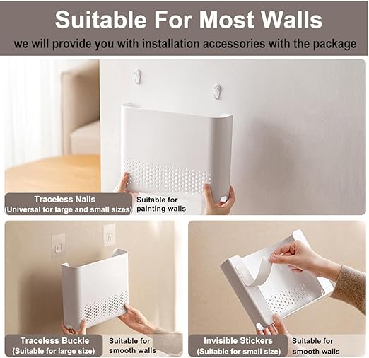 【Kolay kurulum】— WiFi yönlendirici saklama kutusu kurulumu çok kolaydır. Size kurulum aksesuarları sunuyoruz (renk vermeyen tırnaklar ve iz bırakmayan çıkartmalar) sizin için rahat, hızlı ve kolay kurulum.