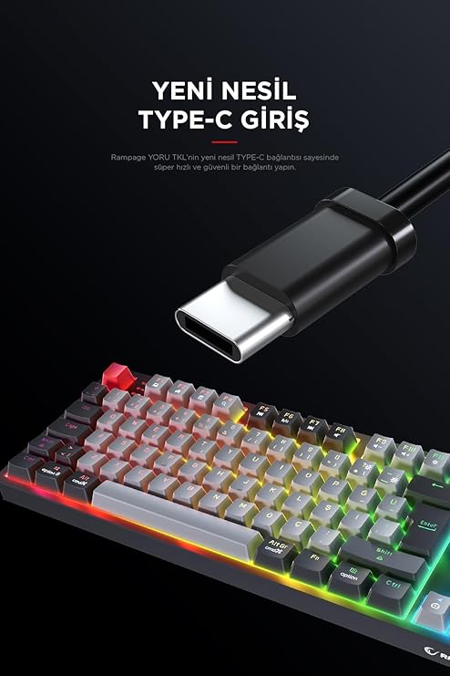 Yoru Tkl Type-c Outemu Rgb Red Swich Mekanik Oyuncu Klavyesi- Gri/siyahUygunluk: 28 adet stokta