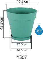46,5 cm çapı ve 46 Litre hacmi ile bitkileriniz için uygun ebattadır.