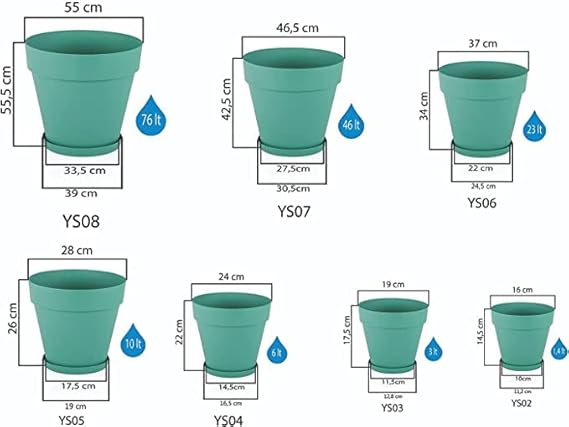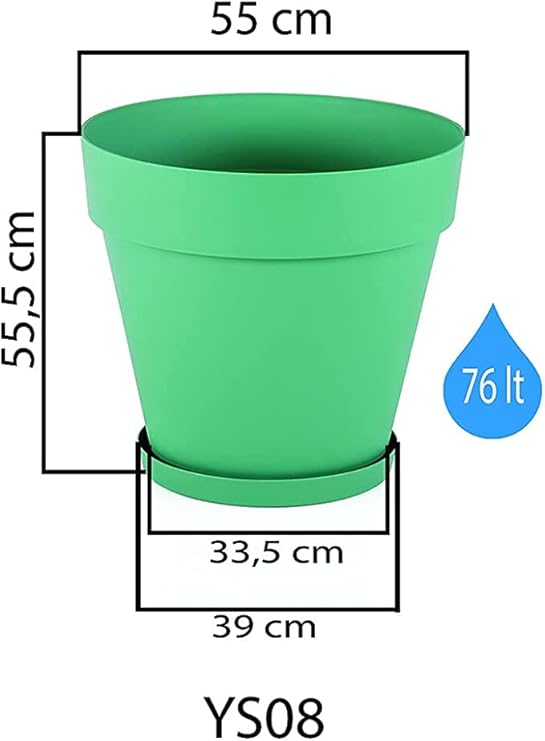 55 cm çapı ve 76 Litre hacmi ile bitkileriniz için uygun ebattadır.