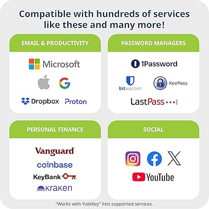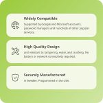 “USB-A bağlantıları için uygundur: Kayıt olduktan sonra gelecekte YubiKey PC Security Key üzerindeki her servis bir USB-A bağlantı noktasına takmanızı ister. NFC özelliği: NCF destekleyen Android ve iOS cihazlar ve uygulamalar için de dokunmatik tabanlı kimlik doğrulaması elde edin. Just tap & go!”