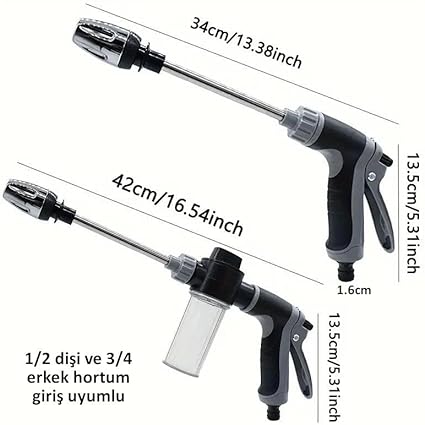 Yüksek Basınçlı Hazneli Köpüklü Araç Oto Yıkama Bahçe Sulama İlaçlama Su Tabancası Ayarlanabilir Başlık Deterjan İlaç HazneliUygunluk: 30 adet stokta