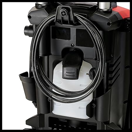 Püskürtme uçları, tabanca vb. için çok yönlü saklama seçenekleri, entegre deterjan tankı; hortum, tabanca, mızrak, dönen nozul dahil