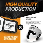 MAKSİMUM GÜVENLİK İÇİN EN İYİ KAFA KORUMASI: Kask, darbelerden veya tekmelere karşı yüksek darbe ve şok emilimi için ideal dolguya sahiptir. Kolay kapatma sistemimiz takmayı ve çıkarmayı çok daha kolay hale getirir, Velcro tutturucuyu biraz gerginlikle kapatın ve baş koruyucusu başınıza mükemmel uyum sağlar. Optimum koruma için MADGON ekipmanınız – tamamen güvende hissedersiniz ve güvenle savaşa girebilirsiniz.