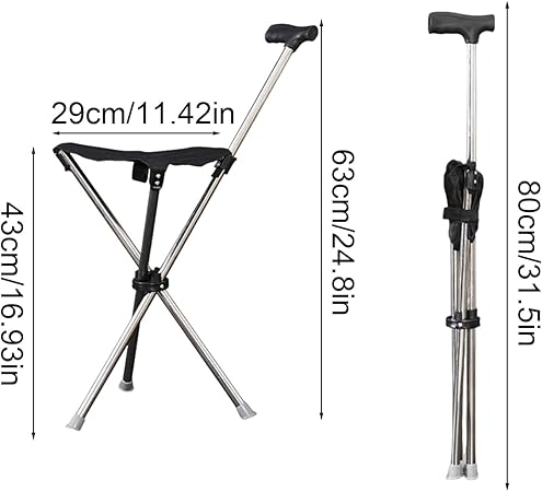 Yürüme Bastonu – Oturmalı Yürüme Bastonu | Sandalye | Ergonomik Destekli Katlanabilir Sandalye | Manyetik Terapi Taş Koltuk Değneği Taburesi Ile Kapasiteli Buzlu Saplı Dış Mekan Seyaha