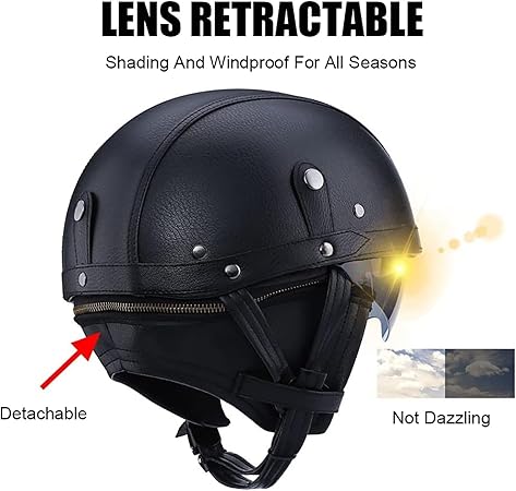 ✔Hafif yarım kask ve havalı, konforlu uyum, daha rahat ve şık bir sürüş arayan motosiklet sürücüleri için idealdir. Ürün, darbeyi büyük ölçüde emebilen ve kafayı yaralanmaya karşı mükemmel şekilde koruyabilen şok emici etkiyi geliştirmek için yüksek yoğunluklu ABS + EPS astar ile donatılmıştır.