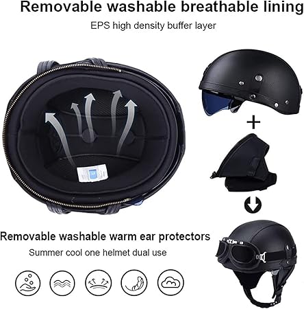 ✔YÜKSEK KALİTELİ Gözlükler: Gözlükler gözlerinizi güneşten, rüzgardan, yağmurdan veya böceklerden korur. İdeal jet motosiklet kaskı korumasıdır ve mopedler ve scooterlar için mükemmeldir.