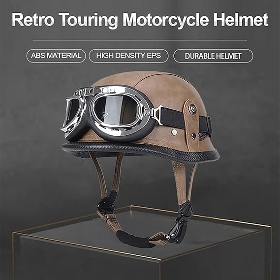 Yüz Kask Yarım Kask Vintage Motosiklet Kaskı Alman Tarzı Jet Kask Scooter Kaskı DOT ECE Erkekler Kadınlar Yetişkin Çarpışma Kaskı İçin Onaylı(B1,S=(55~56cm))