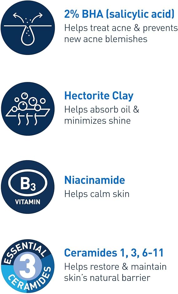 Yüz Yıkama Akne Tedavisi | Yağlı Ciltler için Arındırıcı Killi Salisilik Asit Temizleyici | Siyah Nokta Sökücü ve Tıkanmış Gözenek Kontrolü