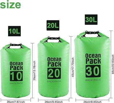 Birden fazla boyut: Su geçirmez kuru torbalar farklı renklerde mevcuttur ve her rengin 3 boyutu vardır (10L/20L/30L) geniş kullanım için.