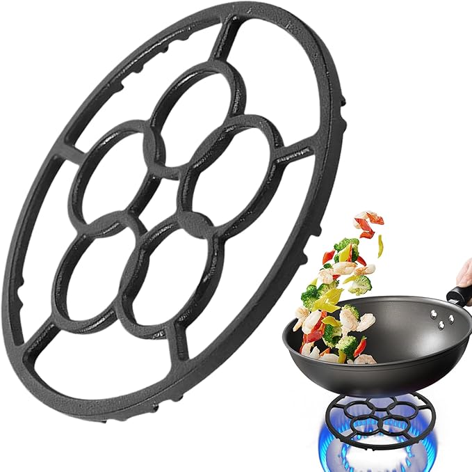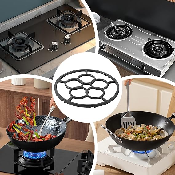 Deformasyon Önleme Tasarımı: Sağlam dökme demirden üretilen bu halka aşınmaya ve ısıya dayanıklıdır, şekli korur ve güvenli ve verimli pişirme için güvenilir stabilite sağlar